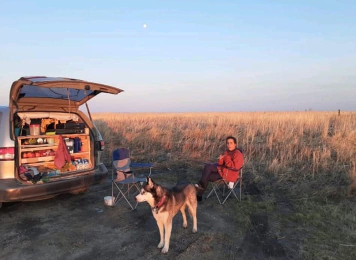 Avec nos modestes économies, nous avons acheté le plus grand véhicule que nous pouvions nous offrir: une dodge caravane. Nous l’avons transformé en notre petit chez-nous nomade, construisant une base pour y installer un lit et optimisant chaque centimètre carré pour y ranger l’essentiel. Puis, nous avons pris la route, le cœur léger mais déterminé.